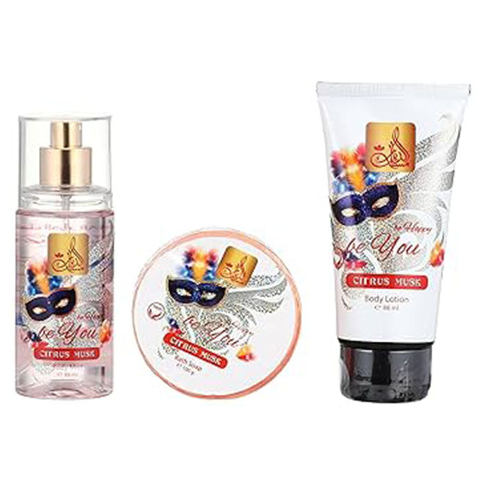 Misk Addiar Be Happy Be You Citrus Musk Set For Women Body Mist 88ml + Body Lotion 88ml + Bath Soap 100ml